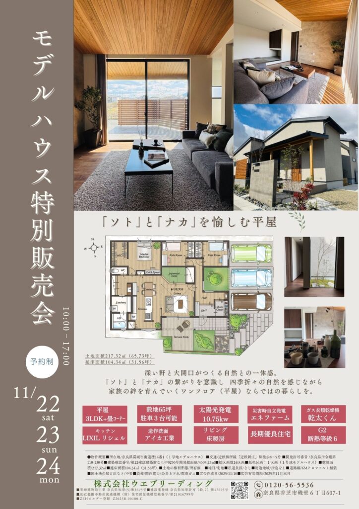 奈良県葛城市南道穂に2/15オープンし、たくさんのお客様にご好評頂きましたモデルハウスの販売です。完全予約制にてご見学、ご案内させていただきますのでお気軽にお問合せくださいませ!