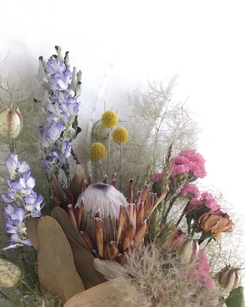 季節の生花を束ねて、そのまま美しいドライフラワーへ。